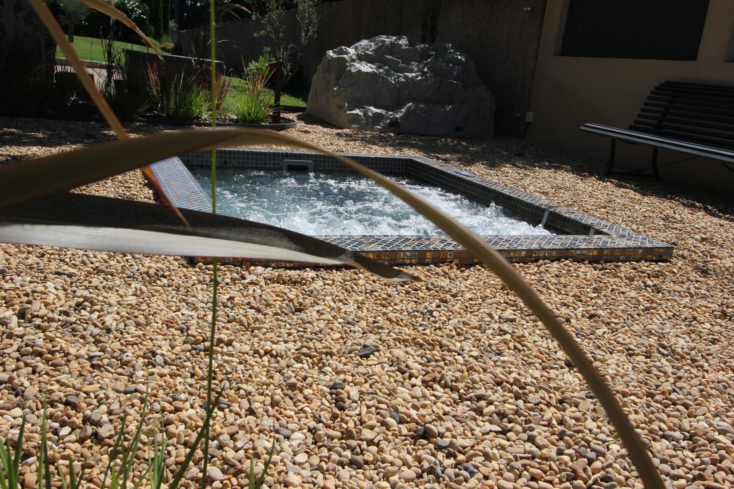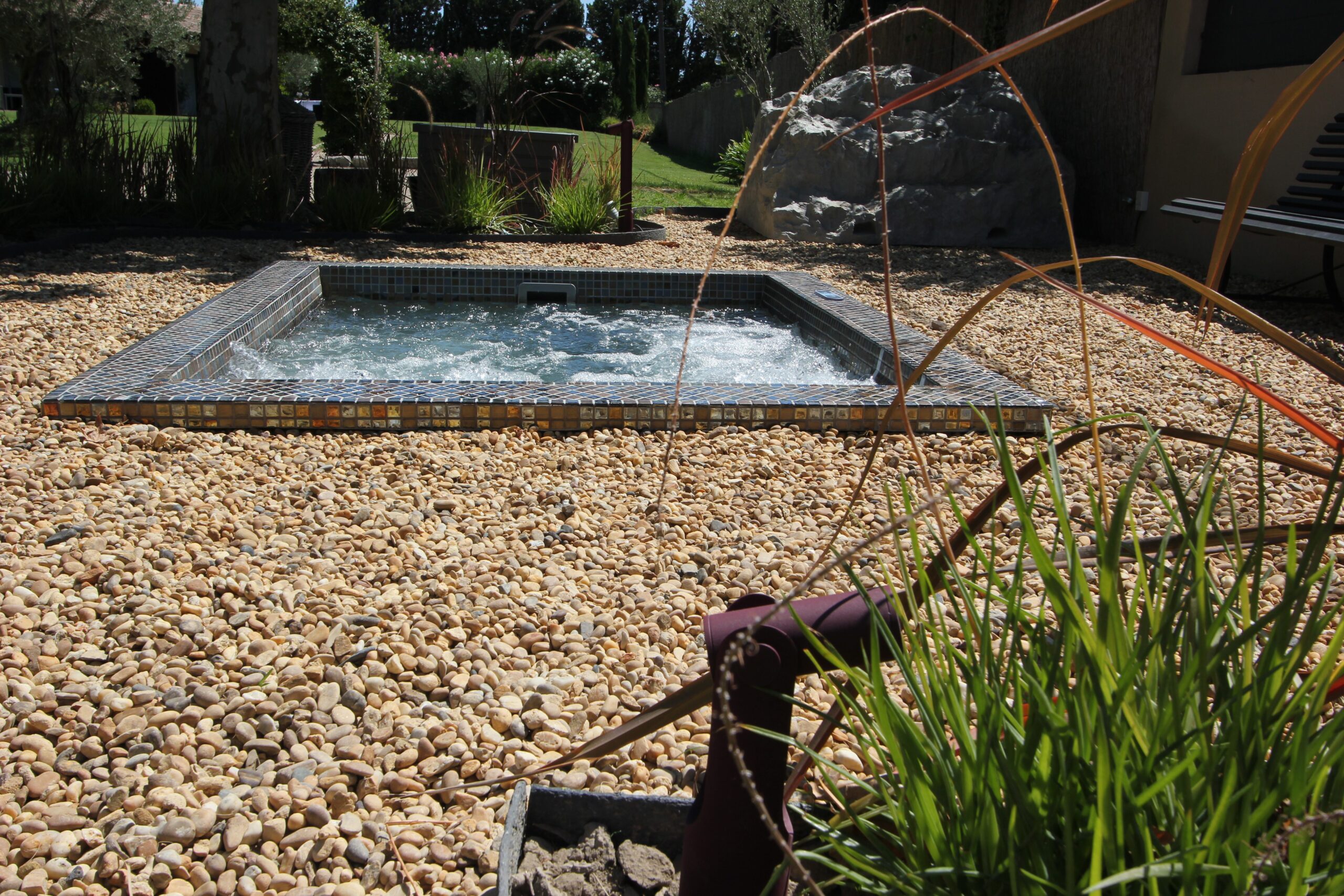 Notre piscine de forme lagon avec sa plage immergée vous attend pour un moment de détente total, disponible durant votre séjour, de mai à septembre. Ce cadre idyllique est parfait pour se ressourcer sous le soleil de Provence.